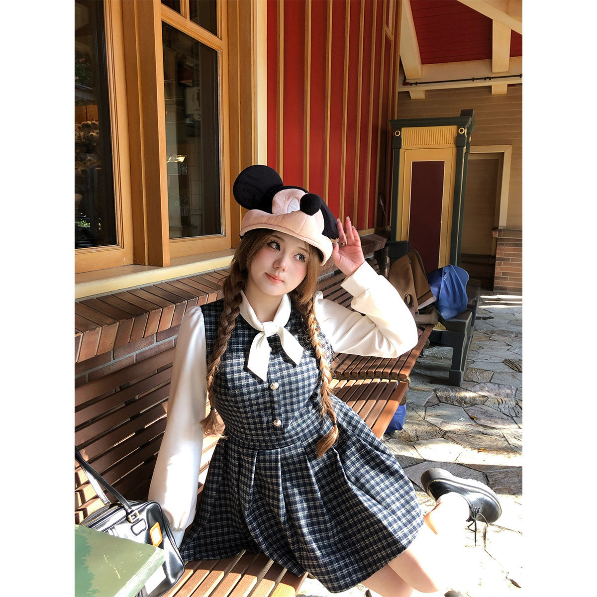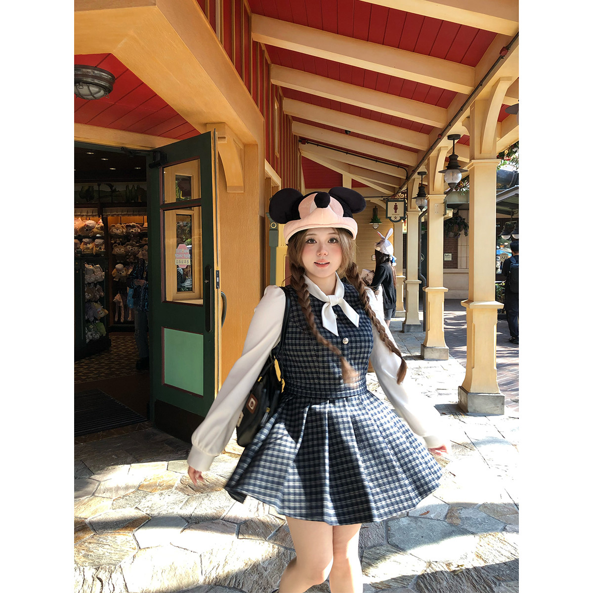 安妮不火学院风呢子格纹A字百褶连衣裙女微胖大码收腰假两件裙子