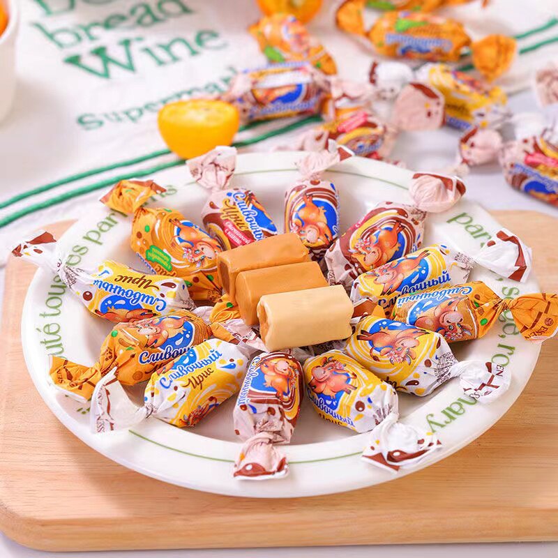 俄罗斯糖果原装进口巧克力味夹心奶糖混合口味花生糖喜糖零食袋装