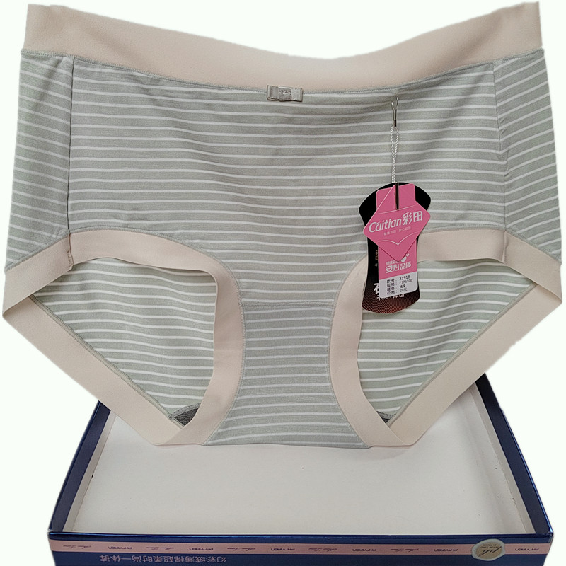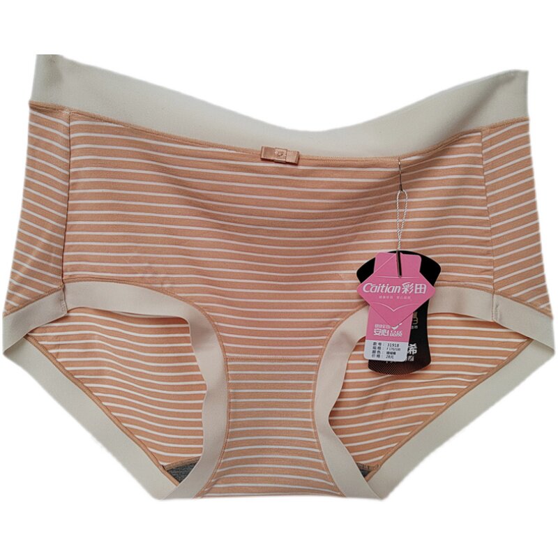 彩田内裤女条纹青年莫代尔日系石墨烯抑菌包臀中腰31917高腰31918