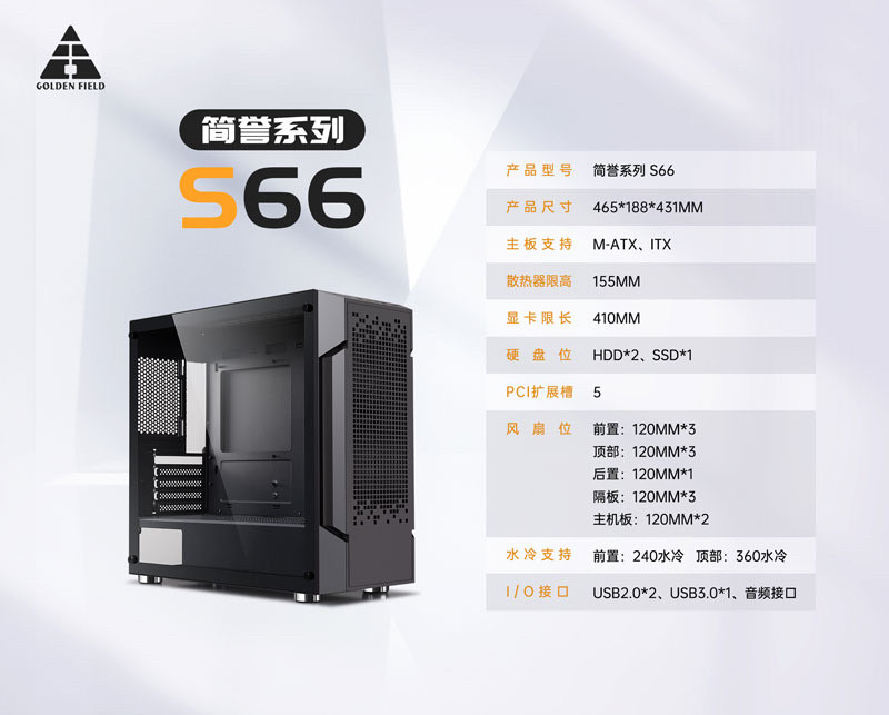 金河田M-ATX机箱360水冷长显卡机箱台式电脑静音防尘机箱简誉S66