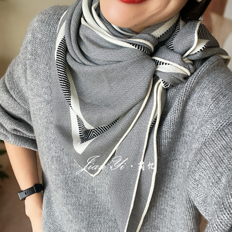 【灰色条纹】经典百搭桑蚕丝真丝羊毛大三角巾双面披肩围巾女