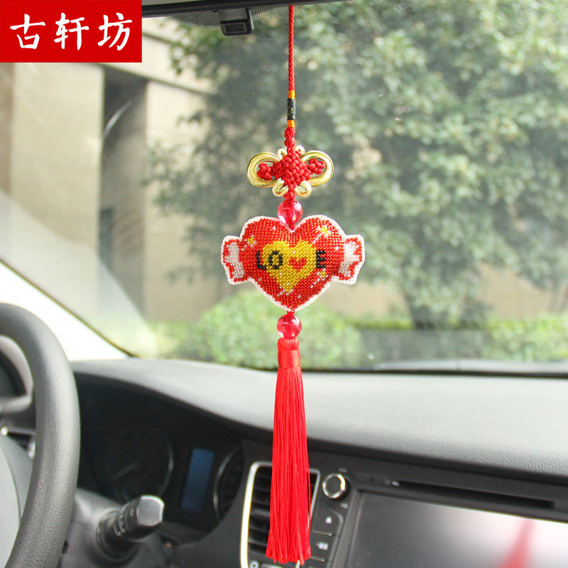 汽车挂件天使爱心纯手工十字绣成品珠绣love保平安符情侣挂饰吊坠