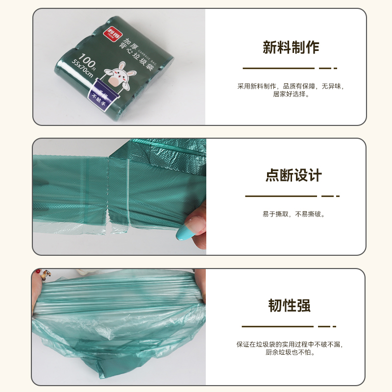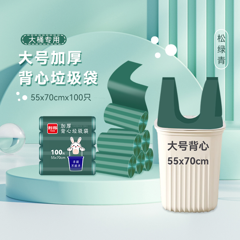 利得垃圾袋背心手提式松绿青55*70*100只双面2丝大号厨房家用加厚