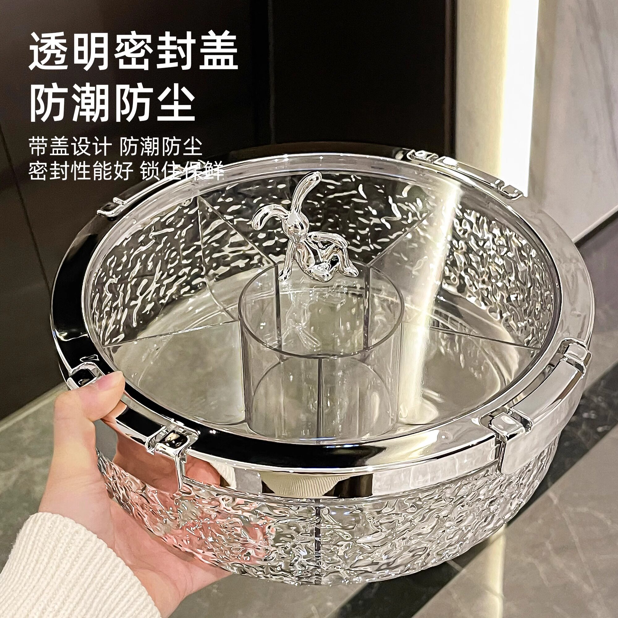 坚果防潮零食收纳盒客厅轻奢密封干果盘家用新款水果盘过年糖果盒