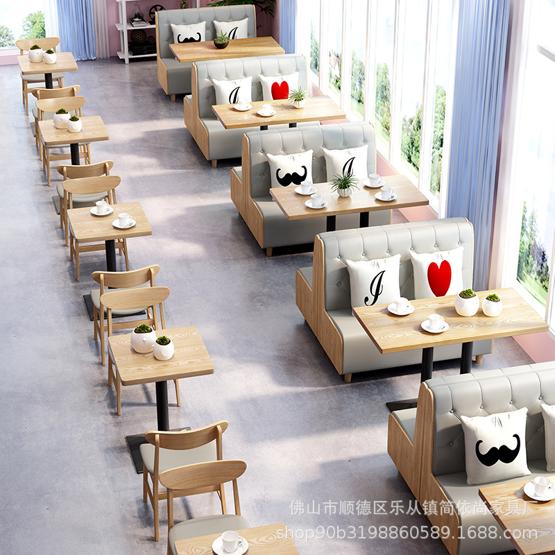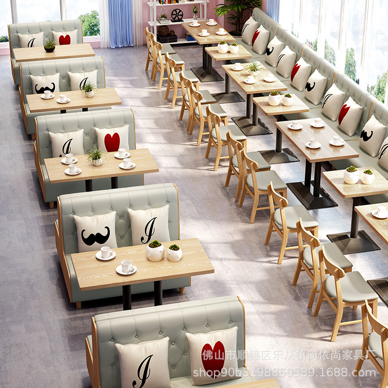 奶茶店桌椅组合经济型简约v清新甜品店咖啡厅西餐厅靠墙小沙发卡