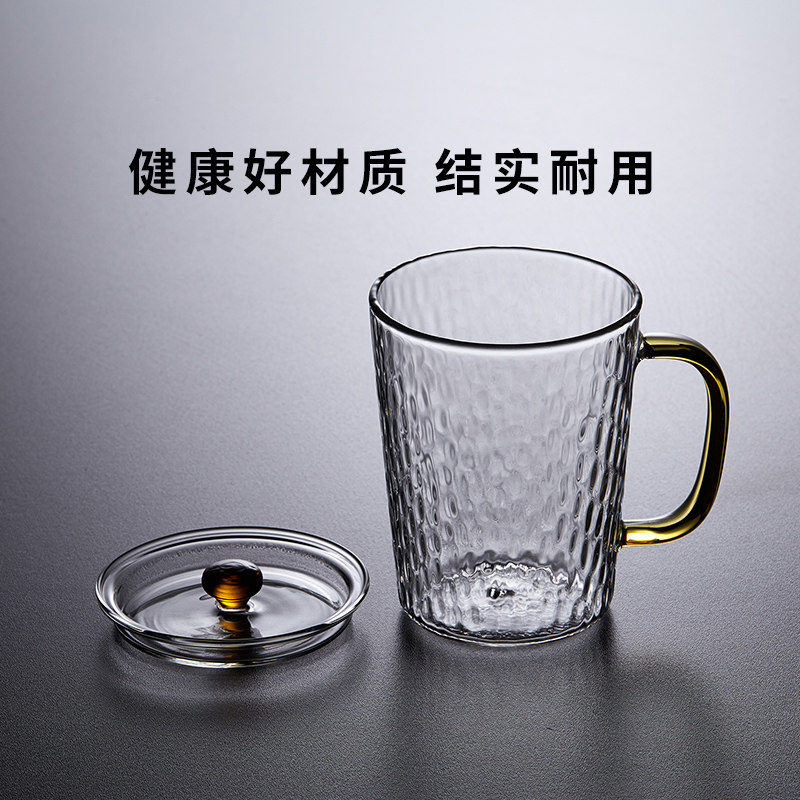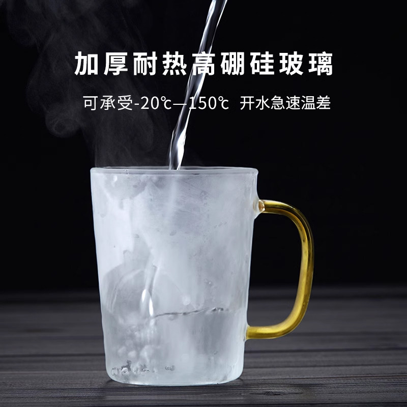 马克杯玻璃杯带盖耐高温家用新款办公室带把家用透明咖啡泡花茶杯