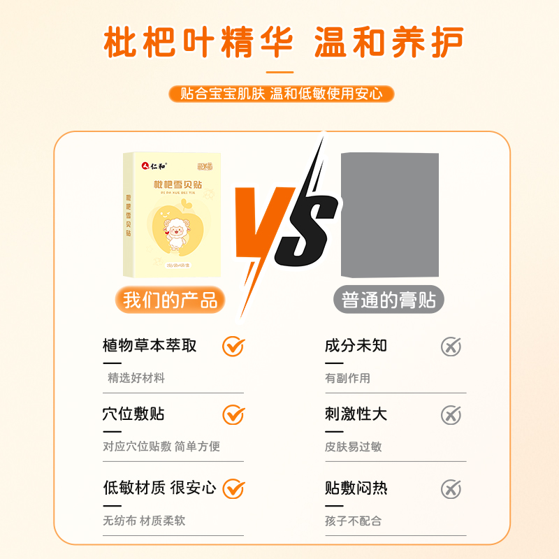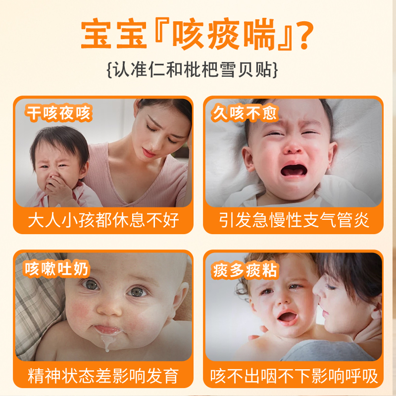 仁和枇杷雪贝止咳贴小儿咳喘化痰贴宝宝感冒咳嗽贴喉咙痛婴幼儿