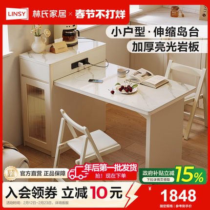 林氏家居奶油风岩板餐桌小户型岛台餐桌一体家用伸缩