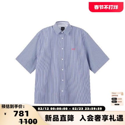 Armani Exchange春夏男士条纹AX宽松版休闲短袖衬衫银泰 300095