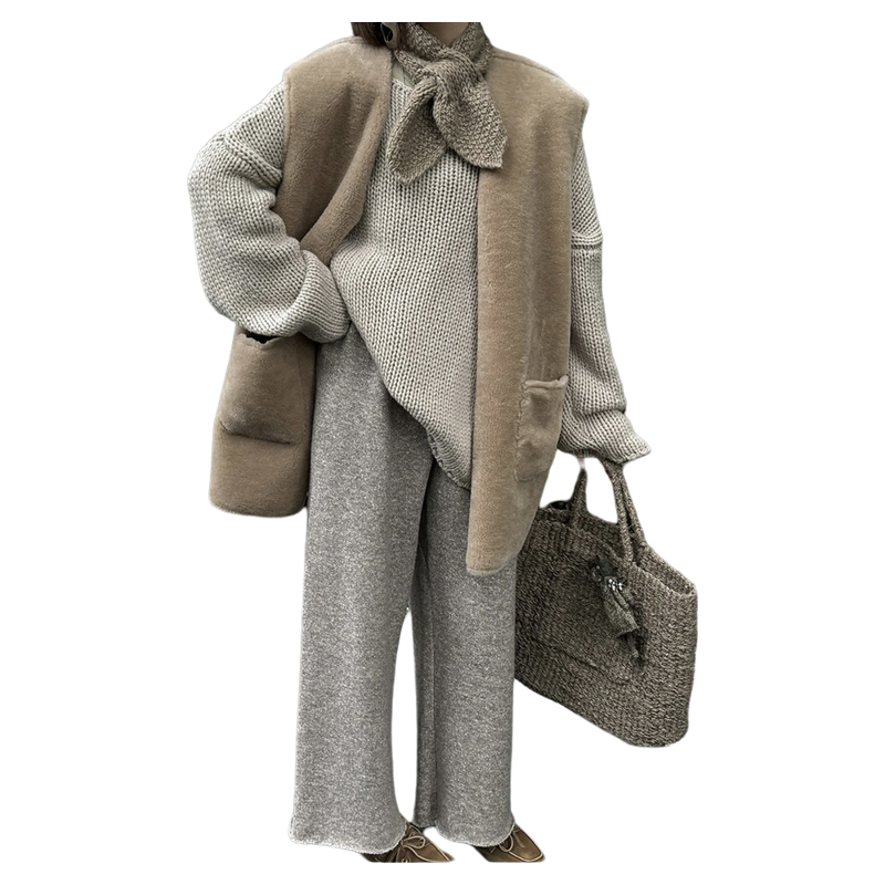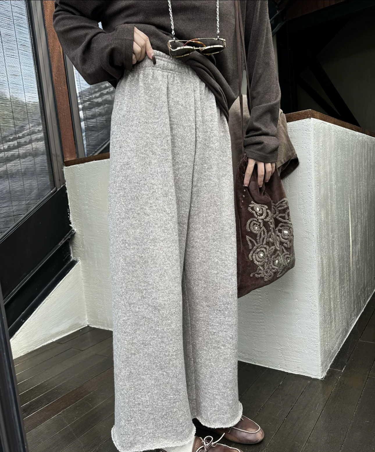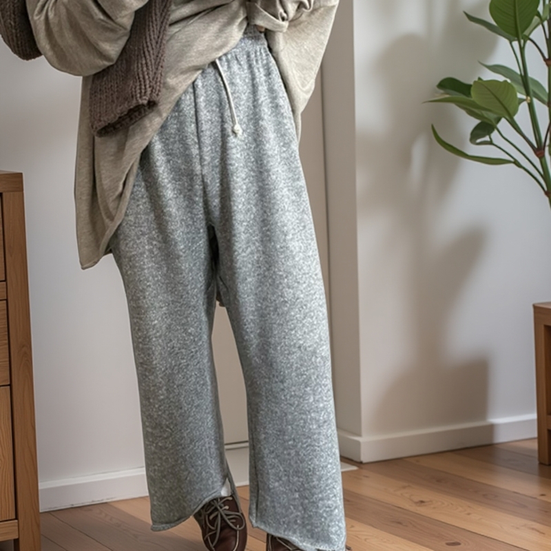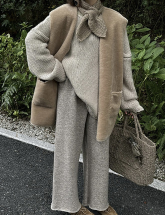Owish 燕麦拿铁 超显瘦保暖羊毛混纺针织九分直筒卫裤秋冬遛弯裤