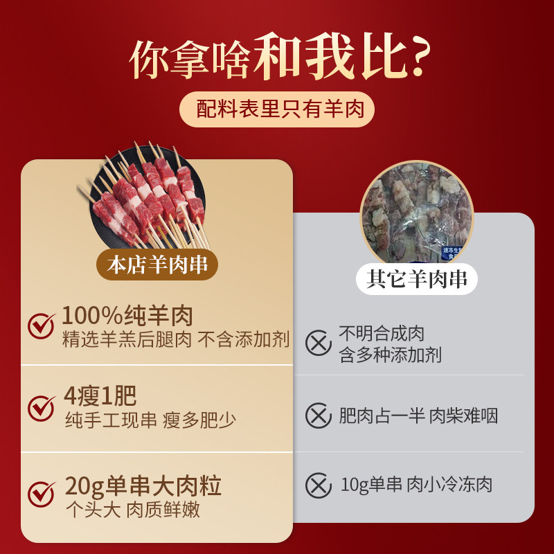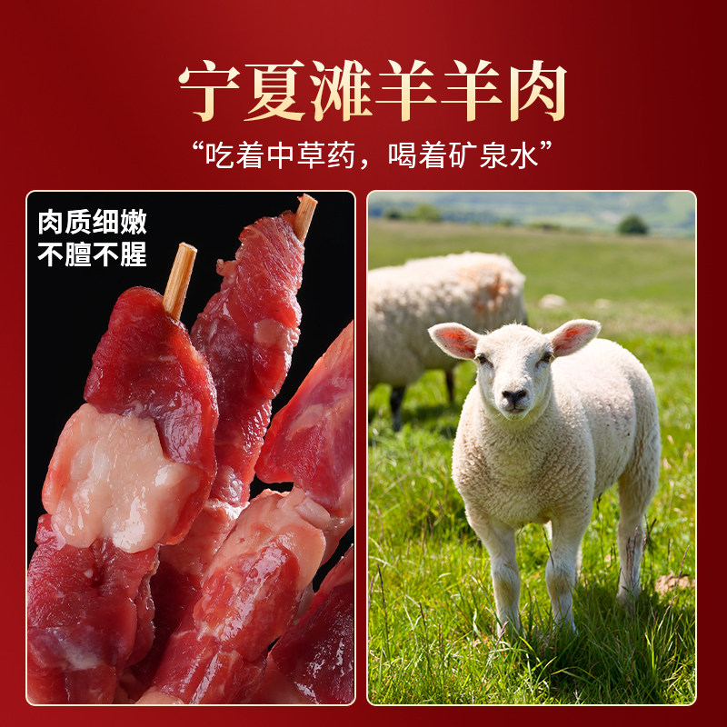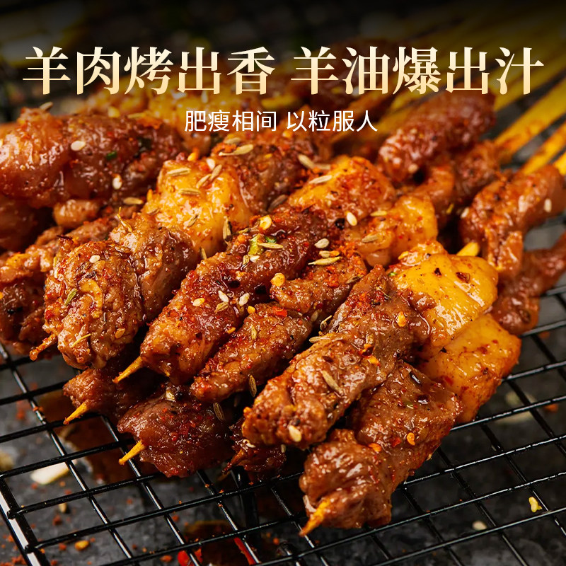 羊肉串新鲜现串非半成品烤串羔羊后腿肉大串户外烧烤空气炸锅食材