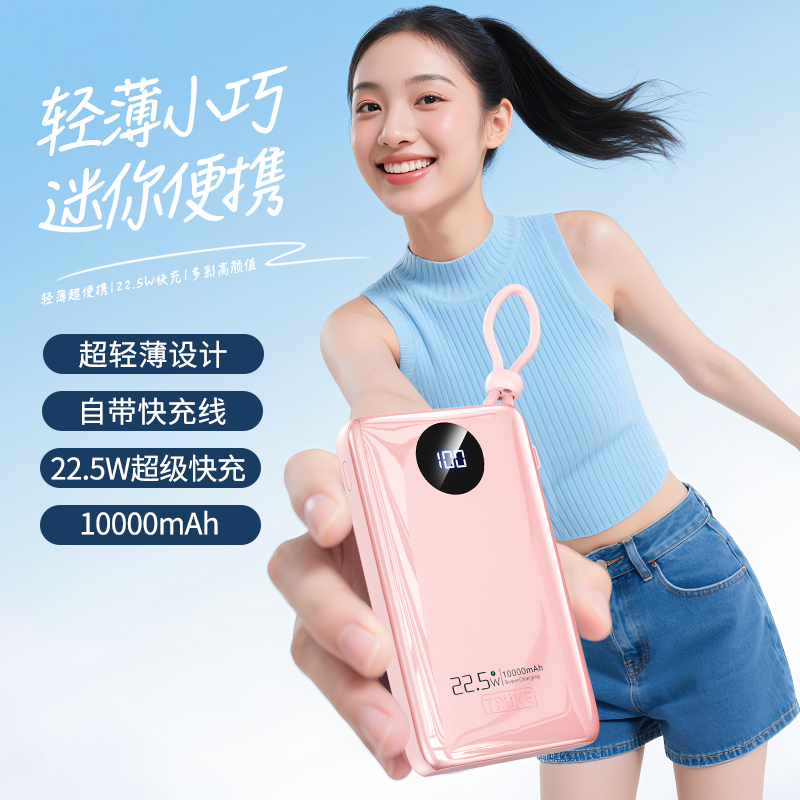 1万毫安充电宝22.5W快充自带线