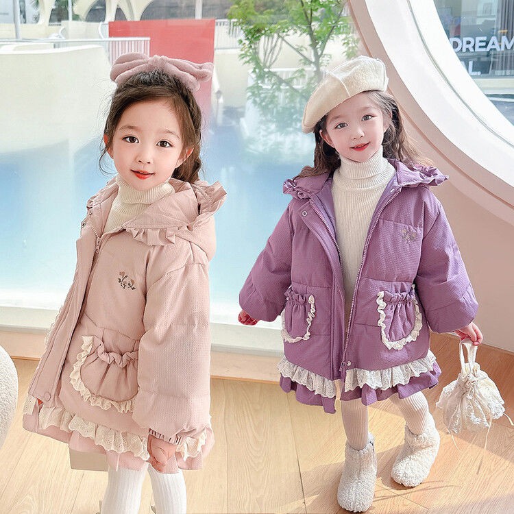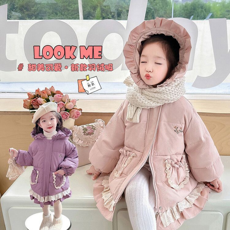 女童羽绒服中长款2024新款宝宝洋气洛丽塔冬季冬装白鸭绒加厚外套