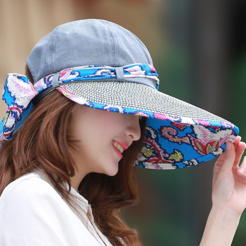 女士帽子夏天户外防晒遮阳帽女士太阳帽防紫外线可折叠大沿沙滩帽