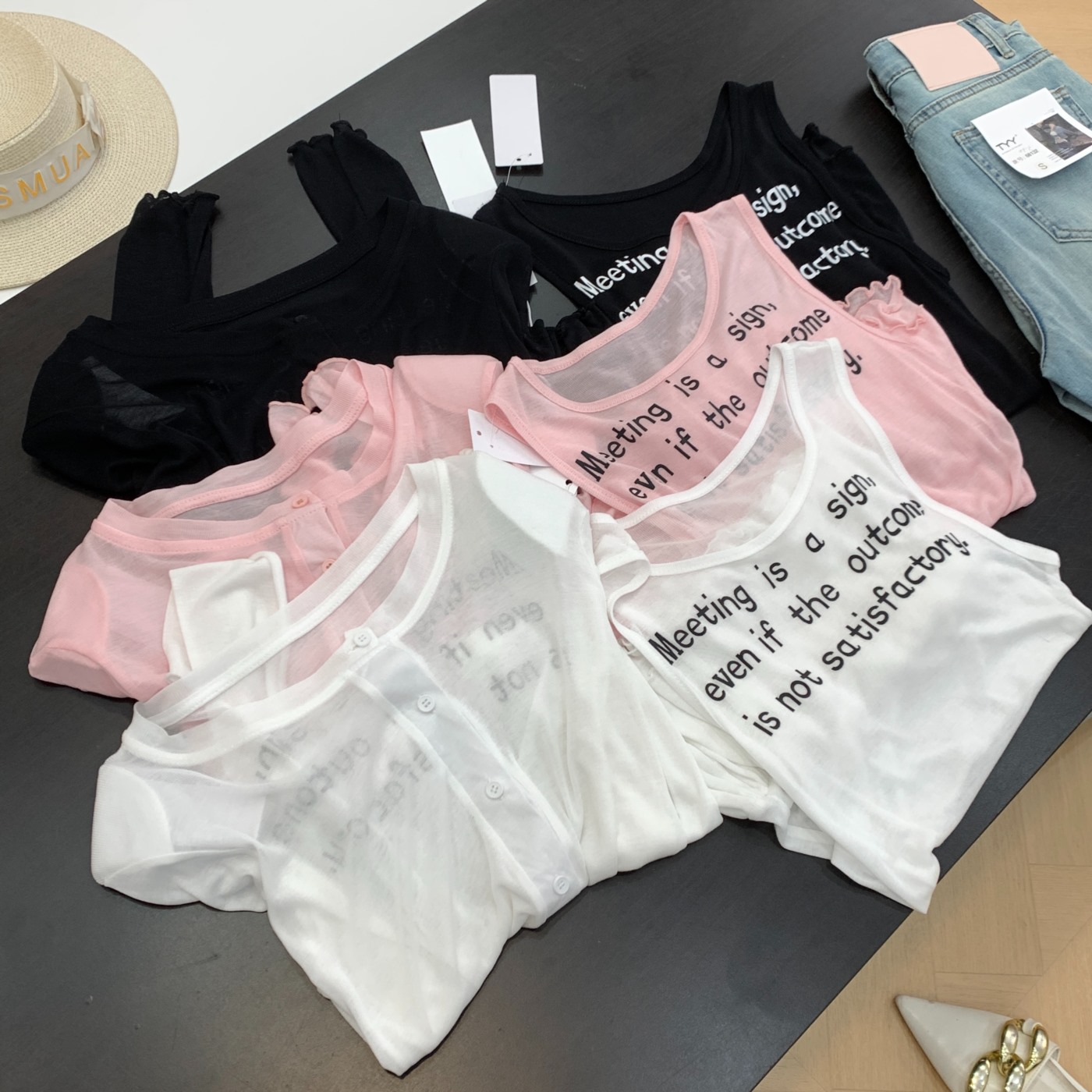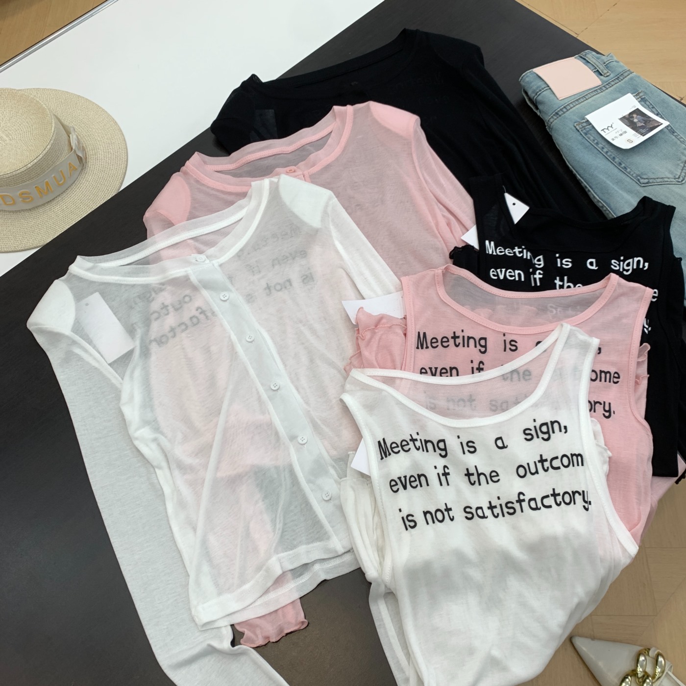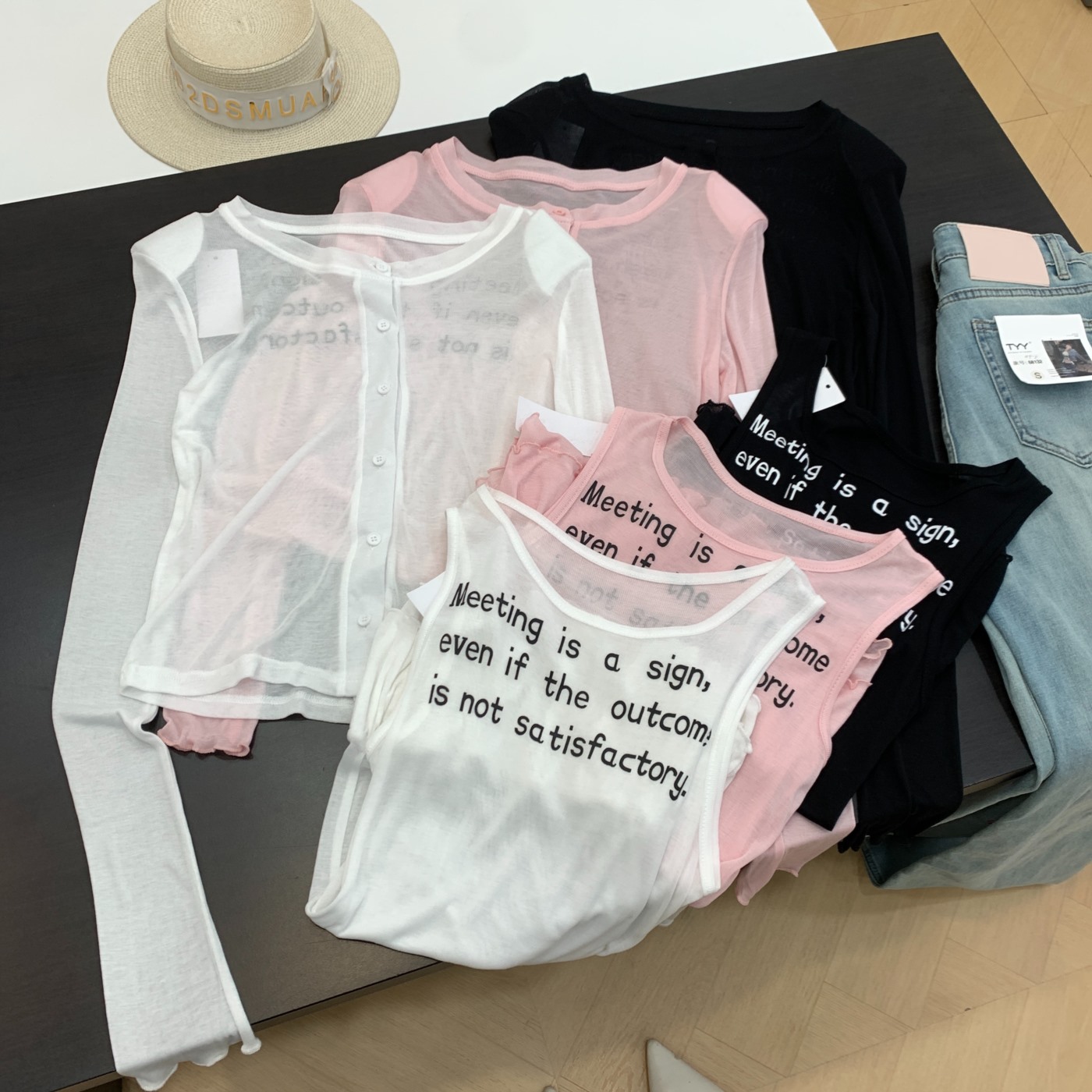 两件套夏季薄透时尚背心内搭宽松开衫长袖新款外套女I#23