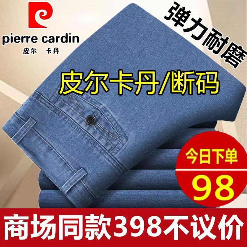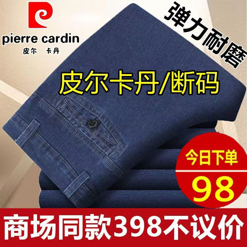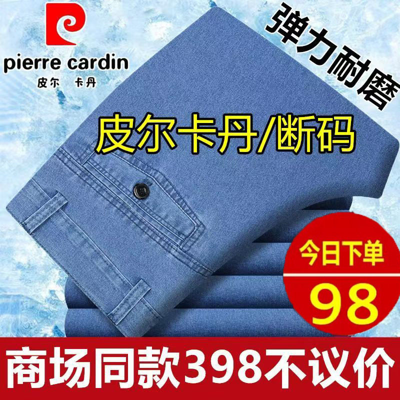 皮尔卡丹高腰深档爸爸直筒牛仔裤