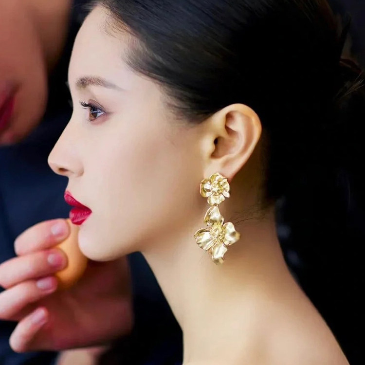 王子文同款耳环新款爆款金色复古耳坠夸张花朵明星气质耳饰耳钉女