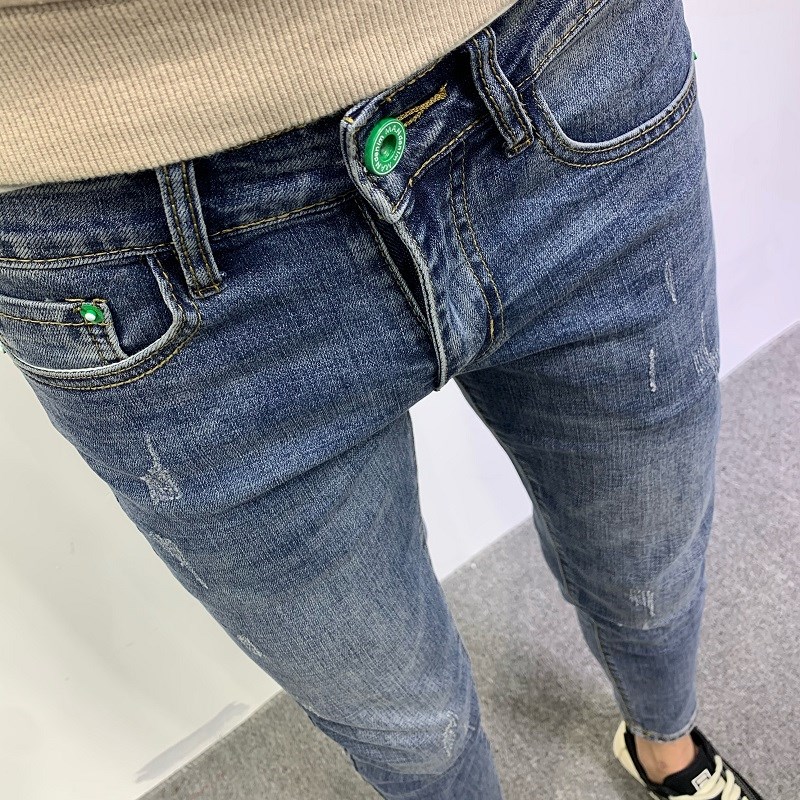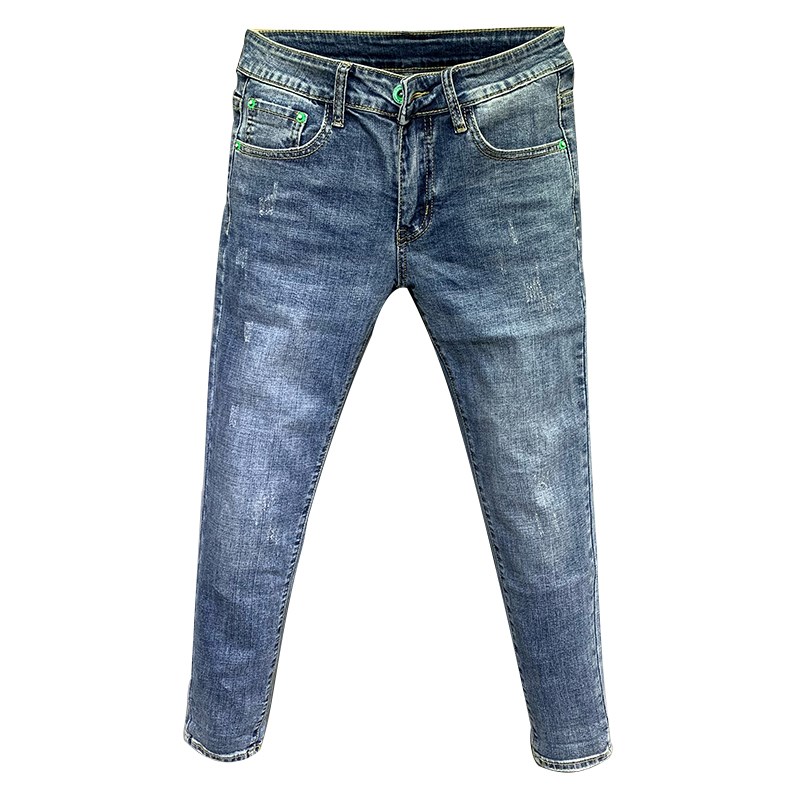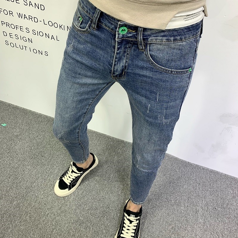 2023年夏季蓝色牛仔裤男潮牌高端男士韩版修身小脚潮流休闲九分裤