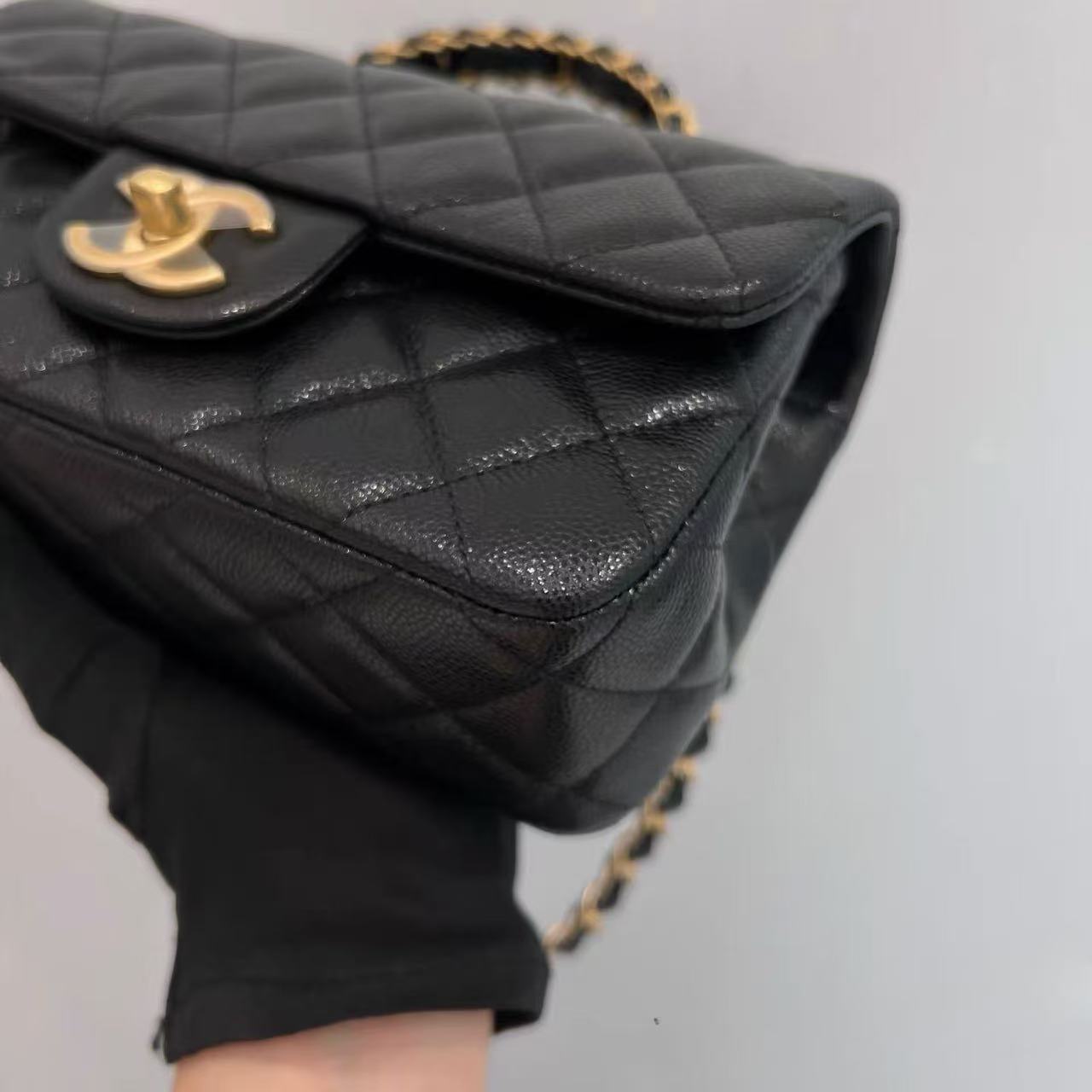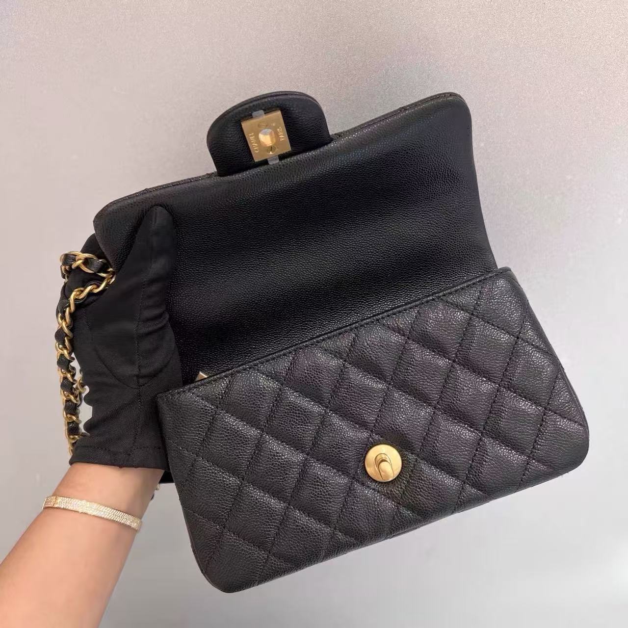 99新香奈儿chanel黑金荔枝牛皮CFmini25单肩手提斜挎包