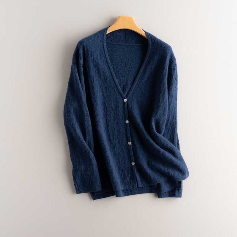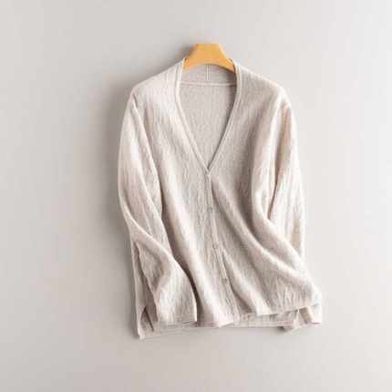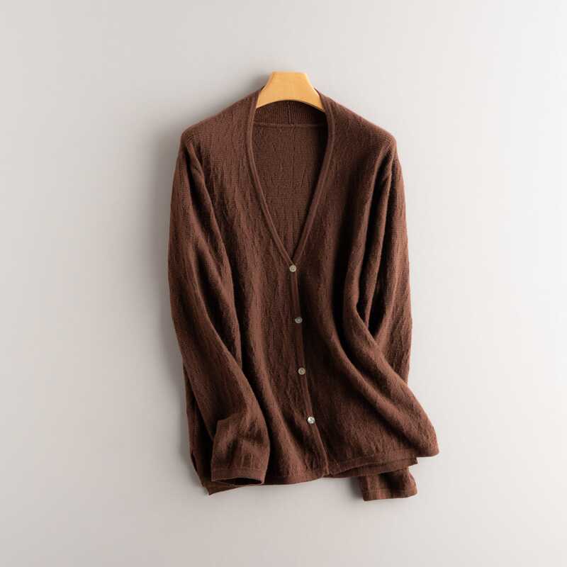 云朵般柔软康赛妮100%纯羊绒开衫肌理感女V领宽松针织毛衣外套