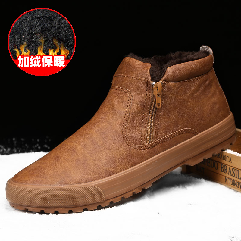 冬季男鞋高帮鞋休闲鞋加绒保暖棉鞋平底鞋父亲鞋爸爸鞋马丁靴短靴