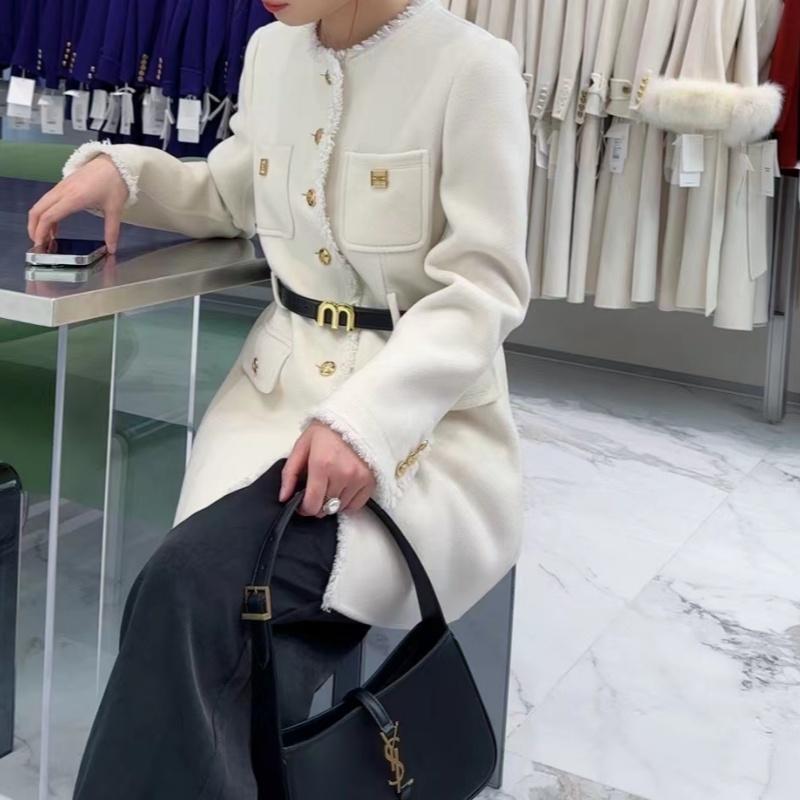 欧洲站圆领双面羊绒大衣女秋冬新中长款时尚百搭显瘦腰带毛呢外套