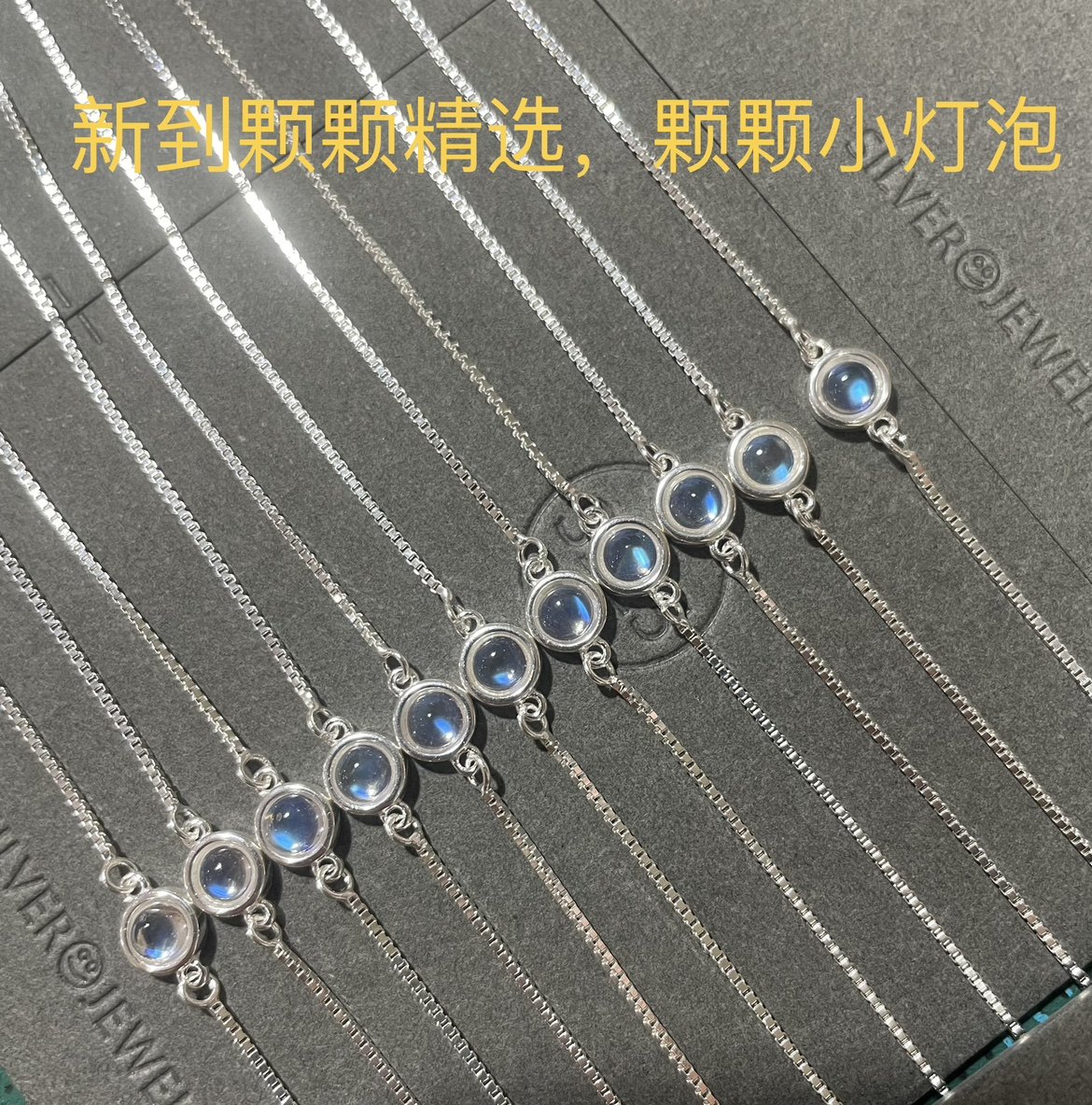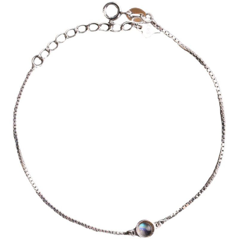 月光落在左手上】天然白月光蓝月光石镶嵌纯银简约宝石森系手链