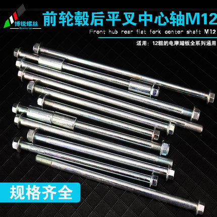 小牛猴子小龟中沙踏板电摩改装通用前轮毂中轴后平叉M12车轴配件