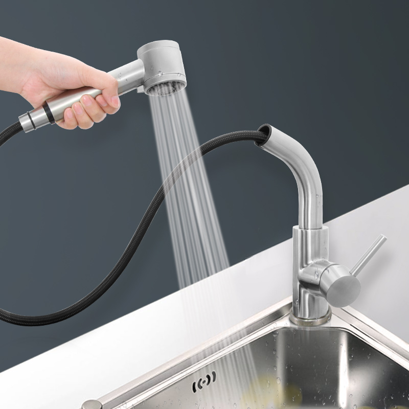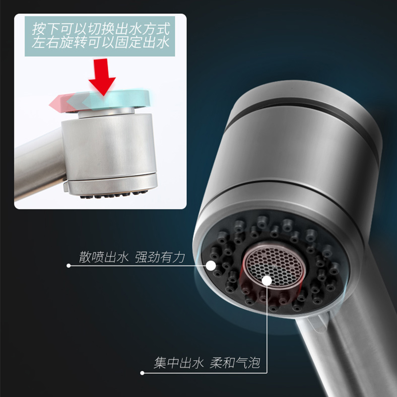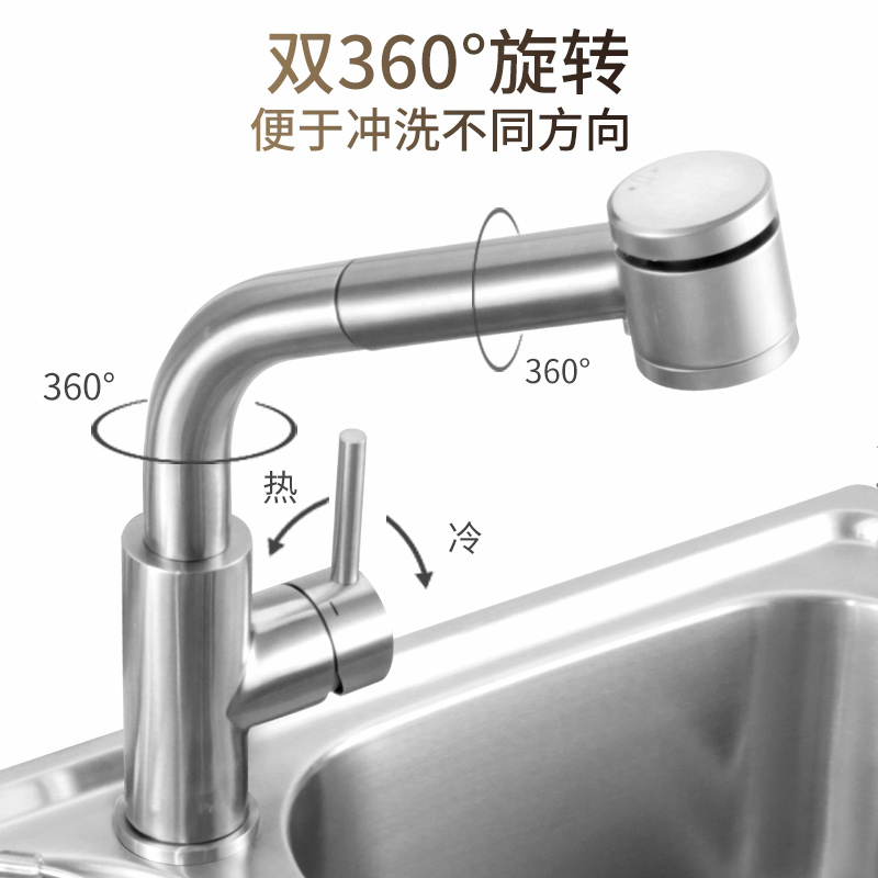 普乐美抽拉式水龙头厨房冷热水龙头家用防I溅洗菜盆龙头304不锈钢