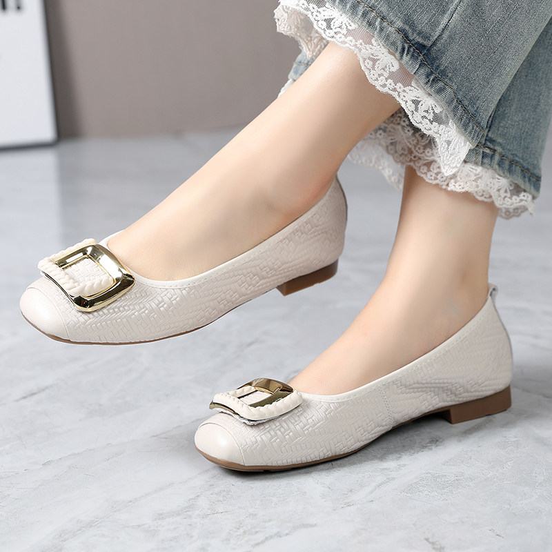 羊皮方头蛋卷鞋女夏秋软底豆豆鞋百搭平底浅口单鞋舒适不累脚皮鞋