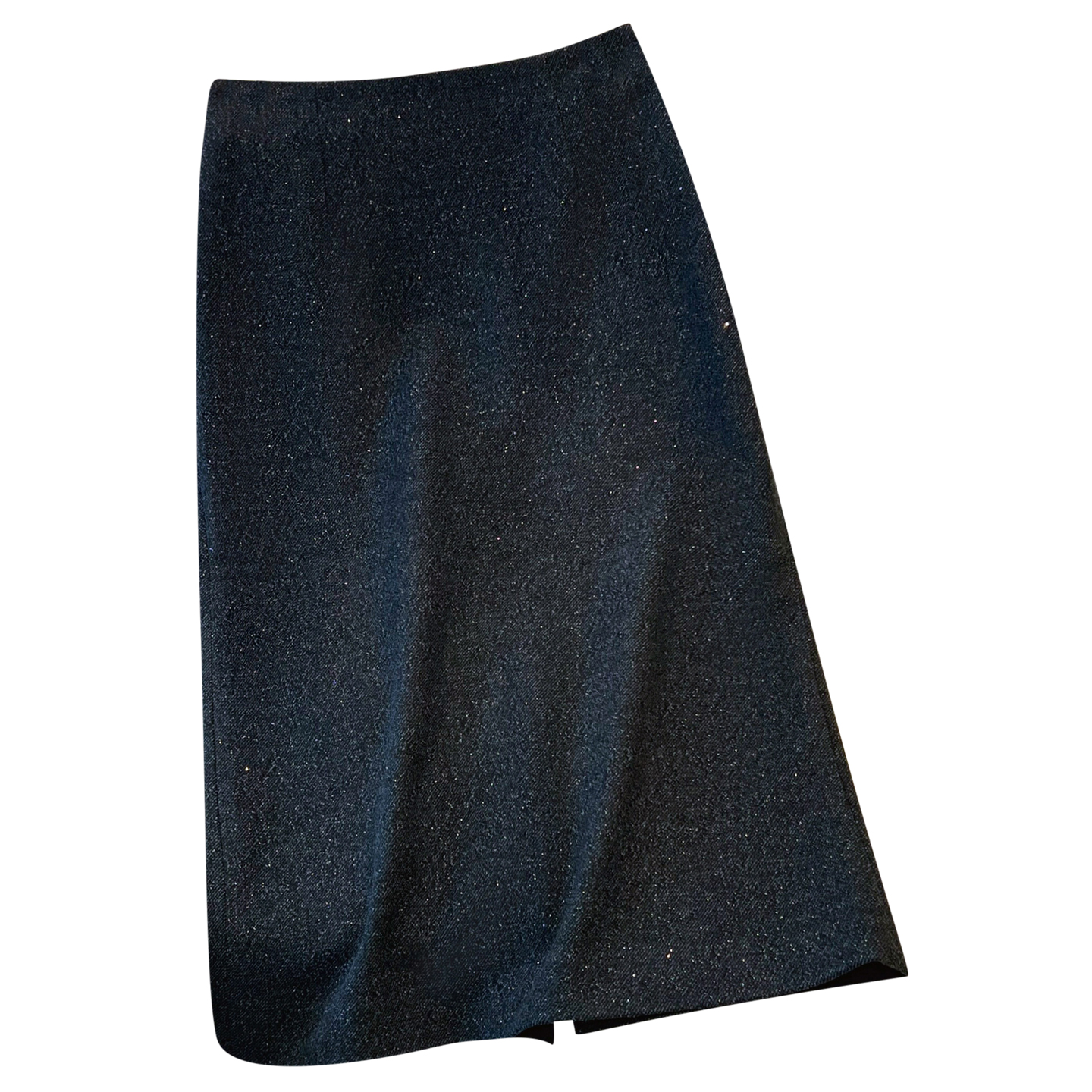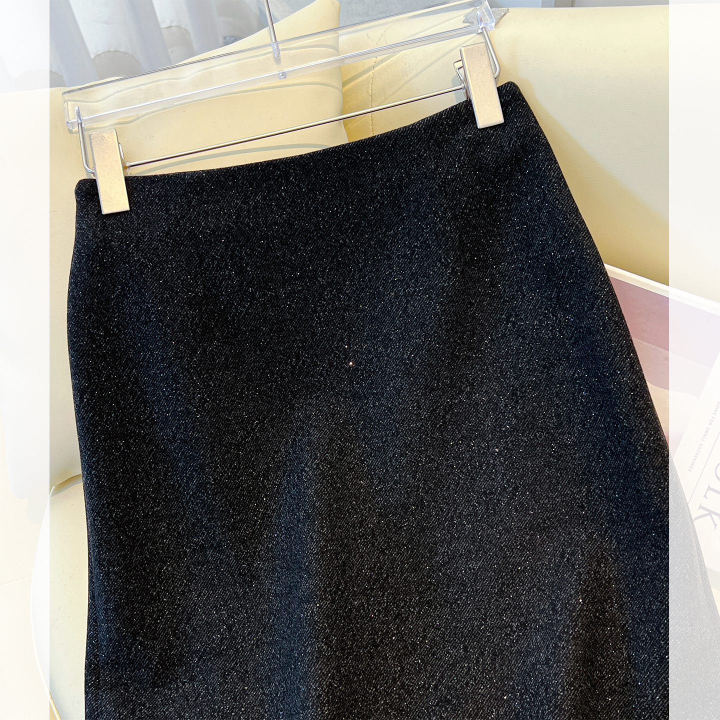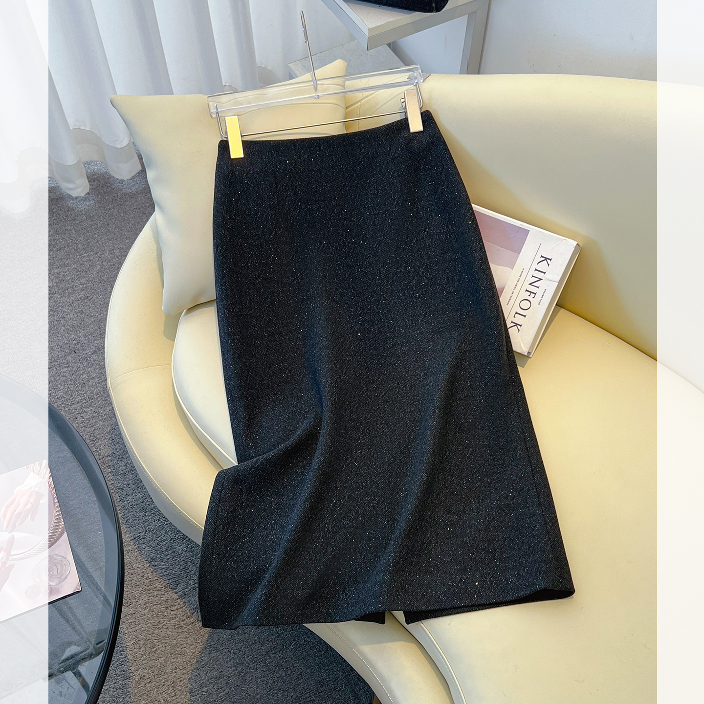 小香风黑色重工亮片毛呢半身裙女2025秋冬季新款直筒包臀开叉裙子