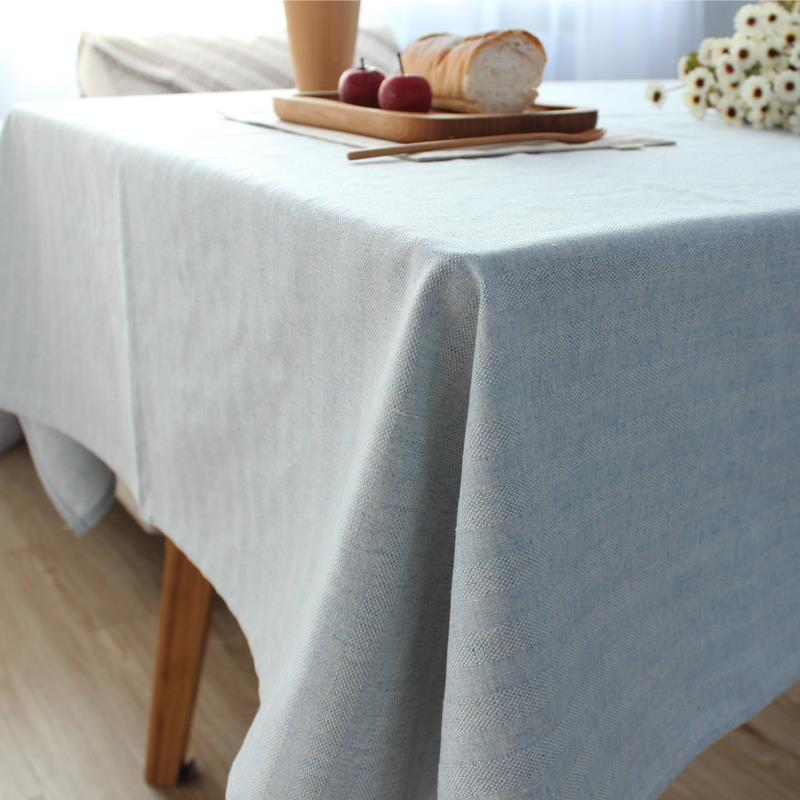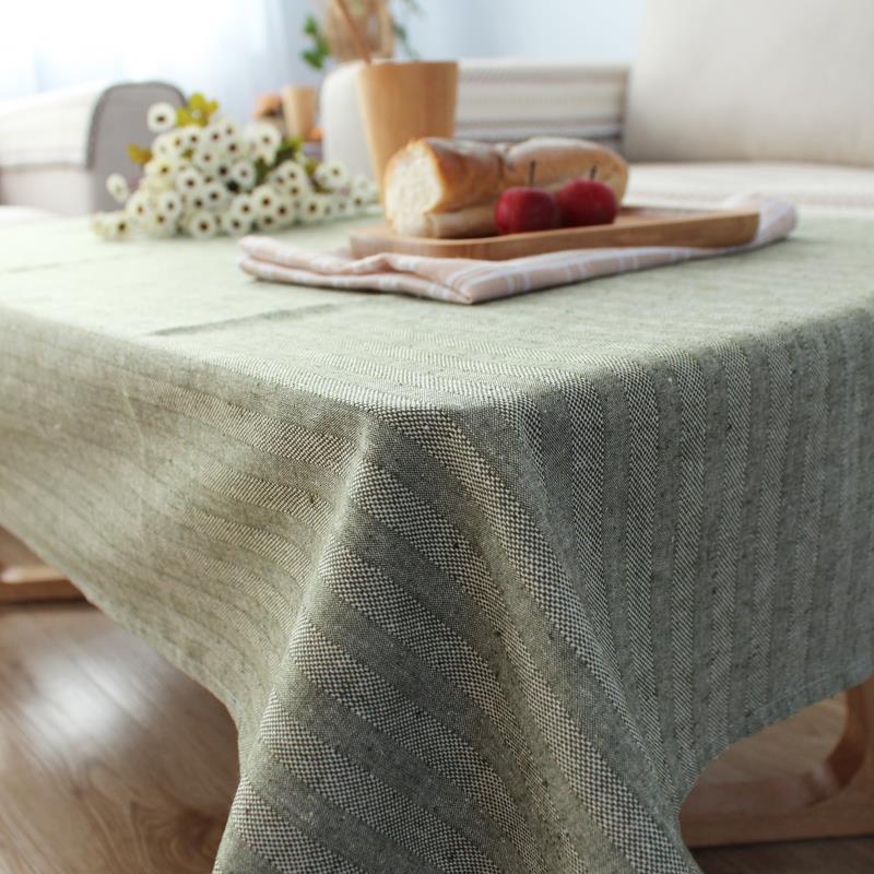 现代简约日式条纹桌布布艺长方形茶几纯色素色棉麻桌布方形餐桌布