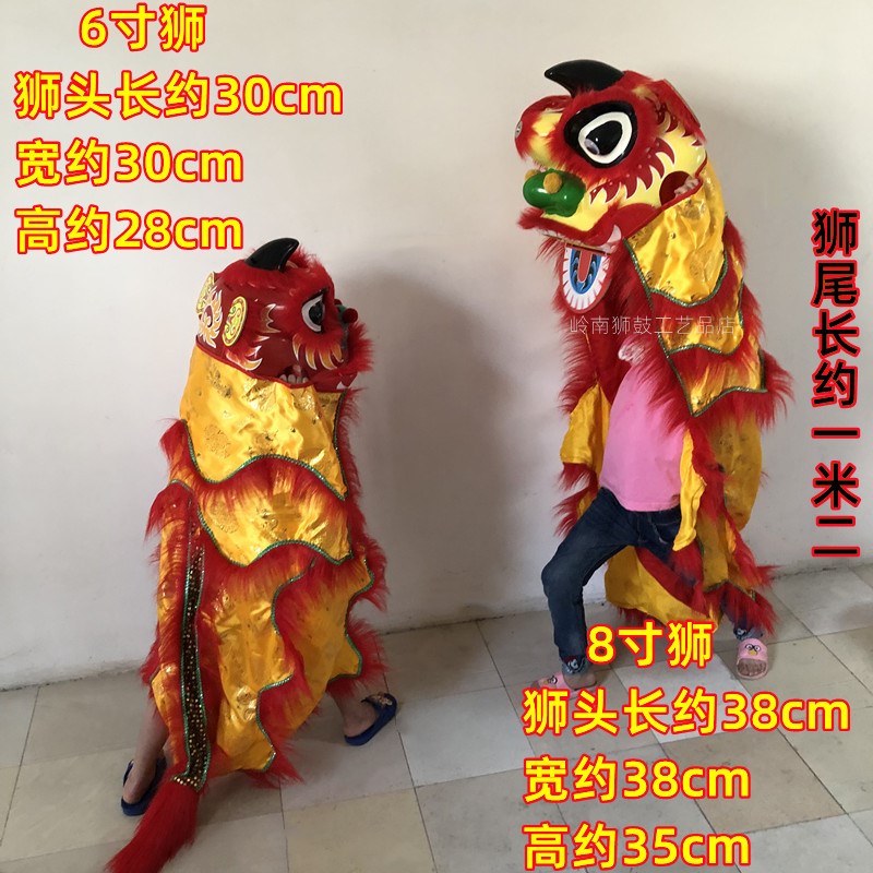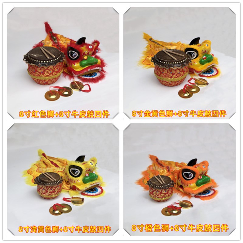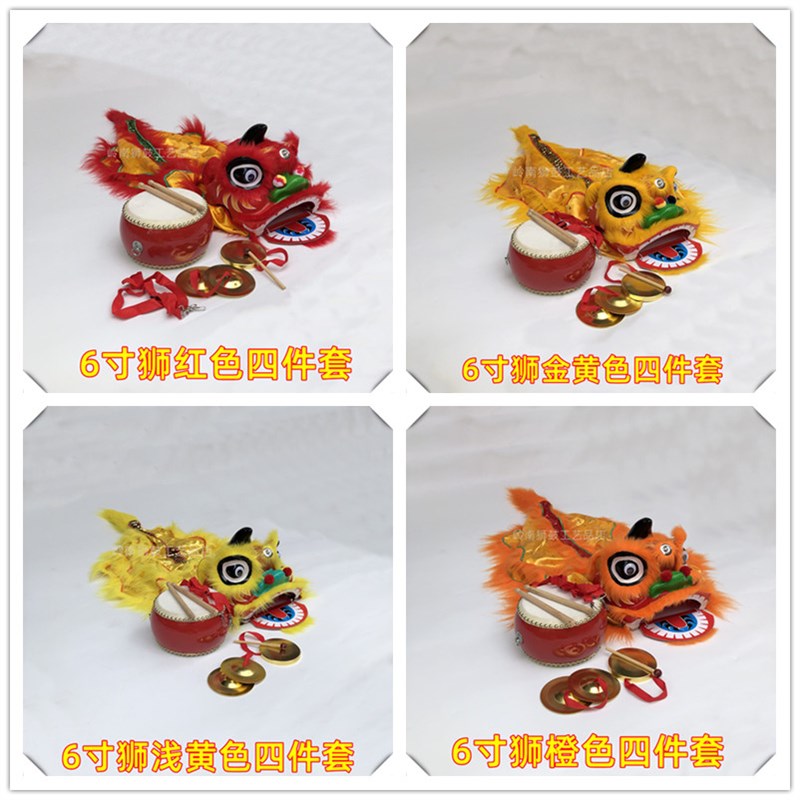 新款6寸狮子民间工艺儿童狮头表演道具8寸红色整套传统小孩舞狮鼓