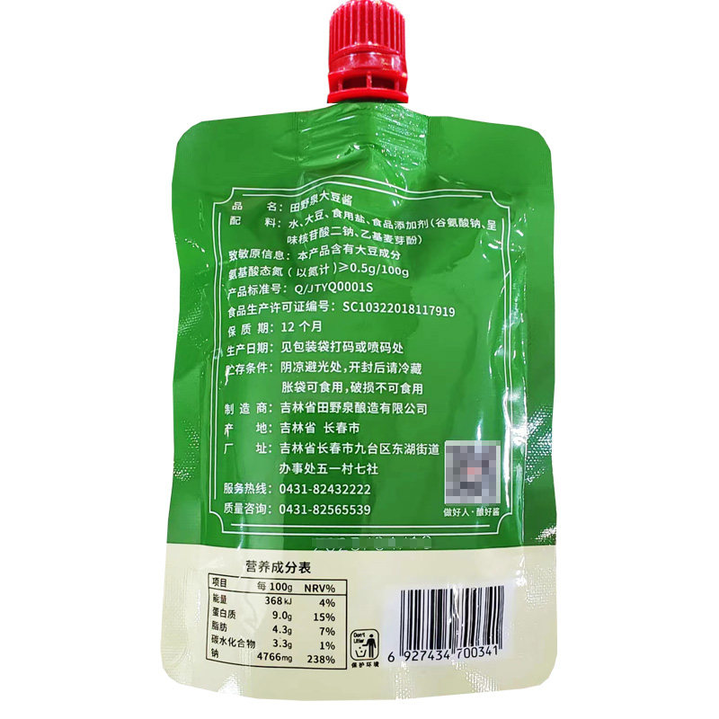 田野泉大豆酱130g东北大酱农家特产黄豆酱