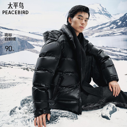 【商场同款】太平鸟男装 鹅绒面包服男黑色连帽羽绒服B1ACF4402