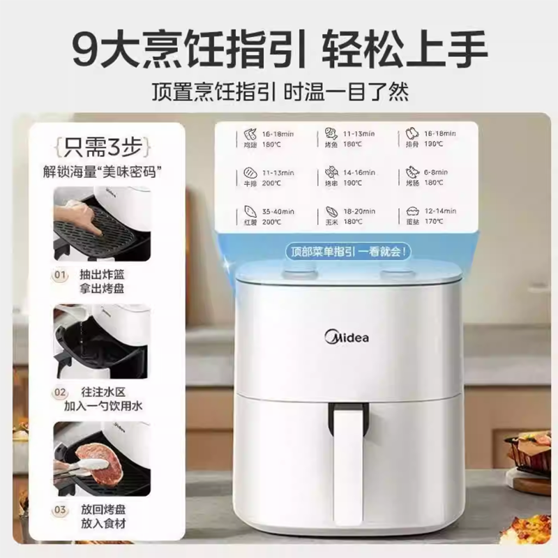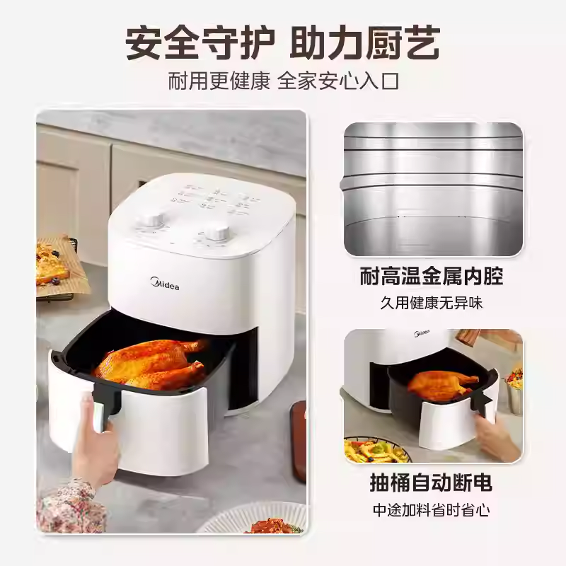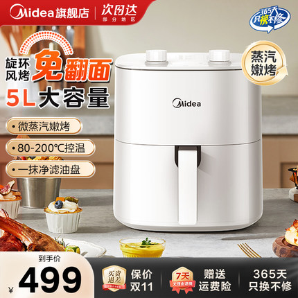 美的空气炸锅家用多功能5L大容量免翻面电烤箱烹饪机官方正品