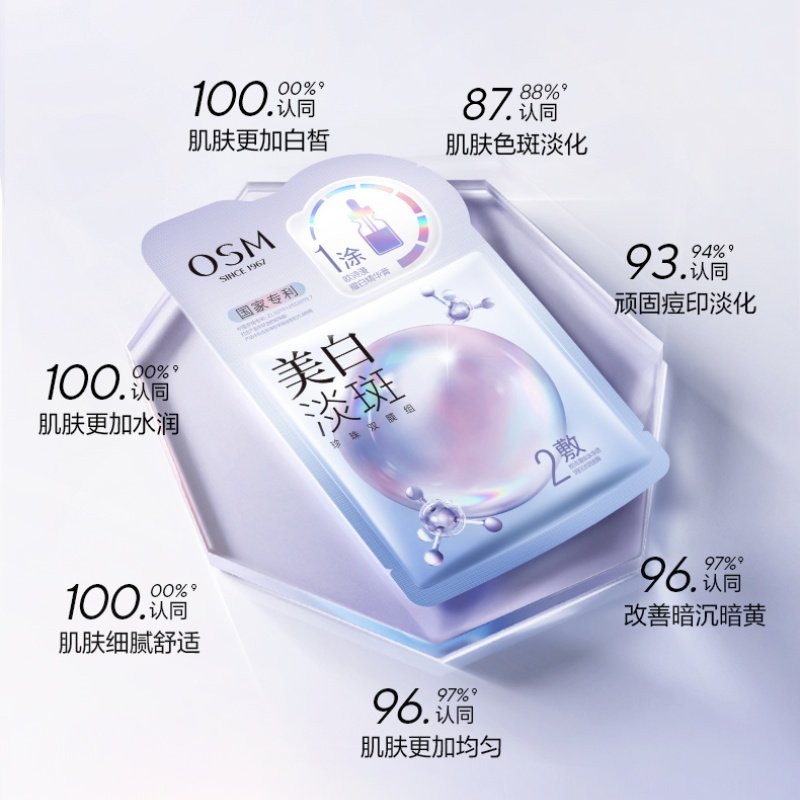 【百补】欧诗漫美白淡斑面膜2片补水保湿烟酰胺提亮祛斑官网正品