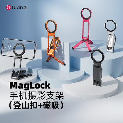 Ulanzi优篮子 MA38登山扣MagLock手机支架便携摄影三脚架适用iPhone苹果安卓桌面拍照magsafe磁吸手持自拍杆