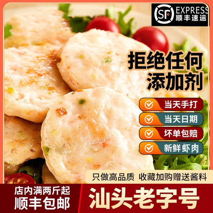 潮世兴潮汕风味无添加手工虾排虾饼500g汕头手打鲜虾肉饼火锅食材