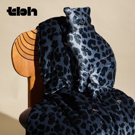 tbh野兽派家居都市野兽黑豹丝绒盖被抱枕套装冬季加厚保暖被子