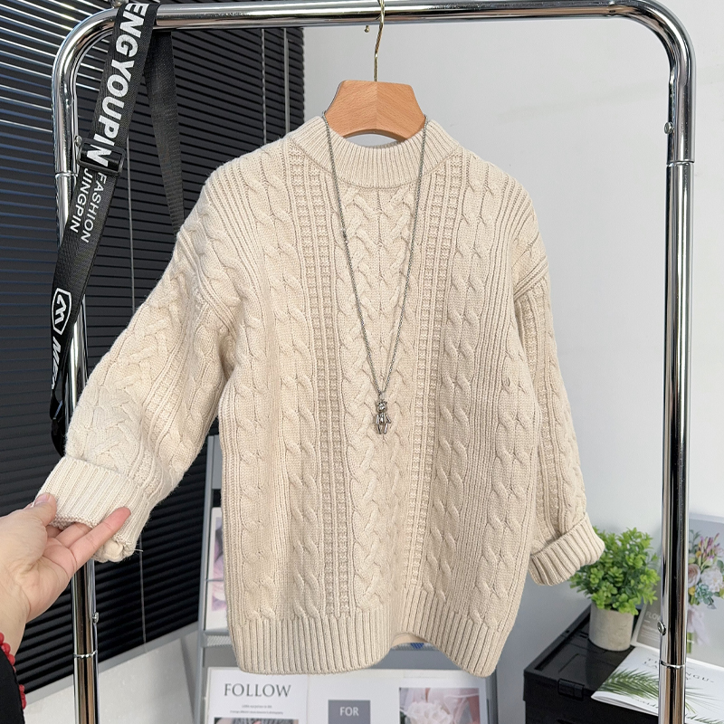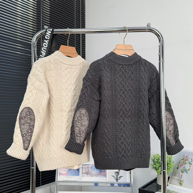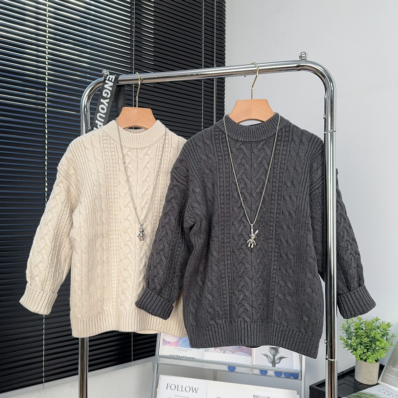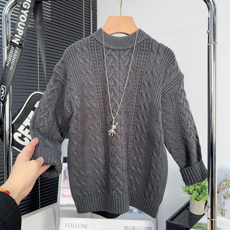 品牌童装男童圆领毛衣2025冬季中大童加厚提花针织衫儿童保暖上衣