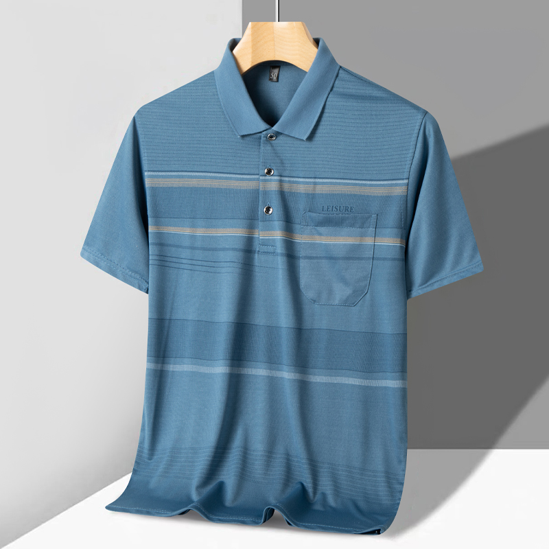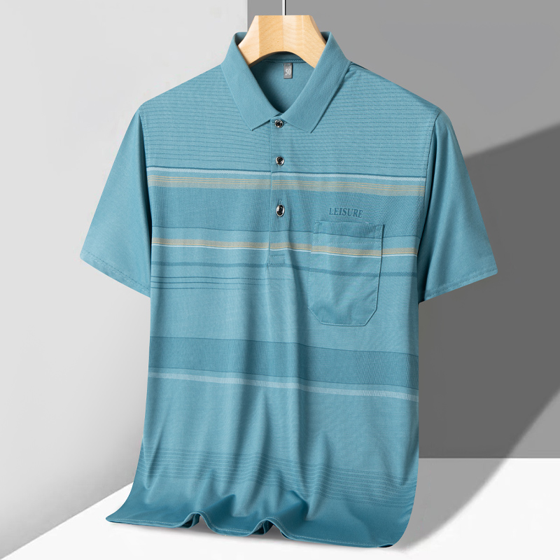 爸爸夏装冰丝弹力男士翻领短袖T恤2024夏季新款中老年条纹POLO衫