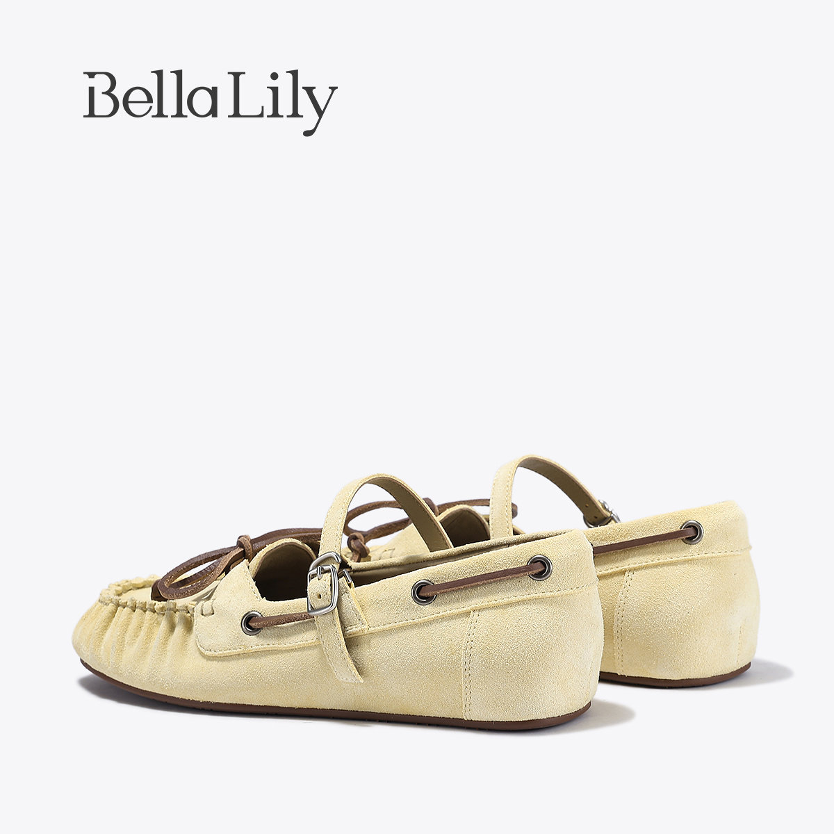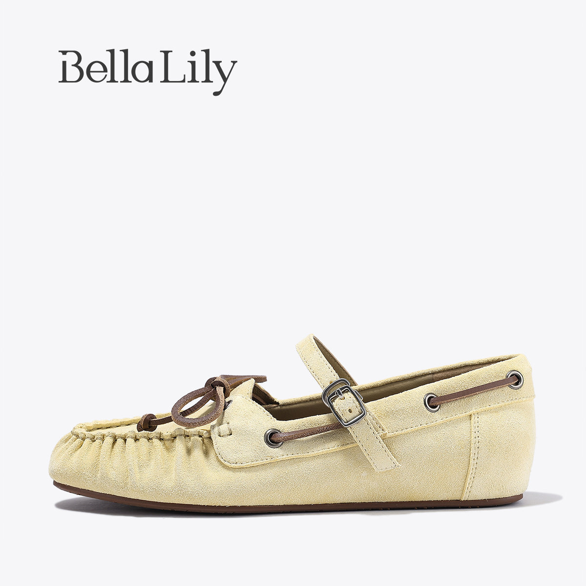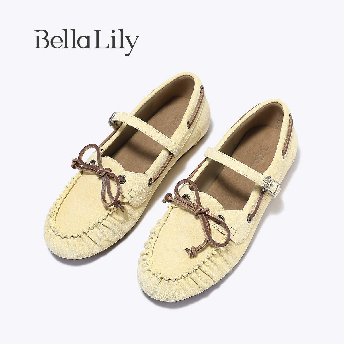 BellaLily2026春季新款法式气质玛丽珍鞋软底浅口乐福鞋牛皮单鞋