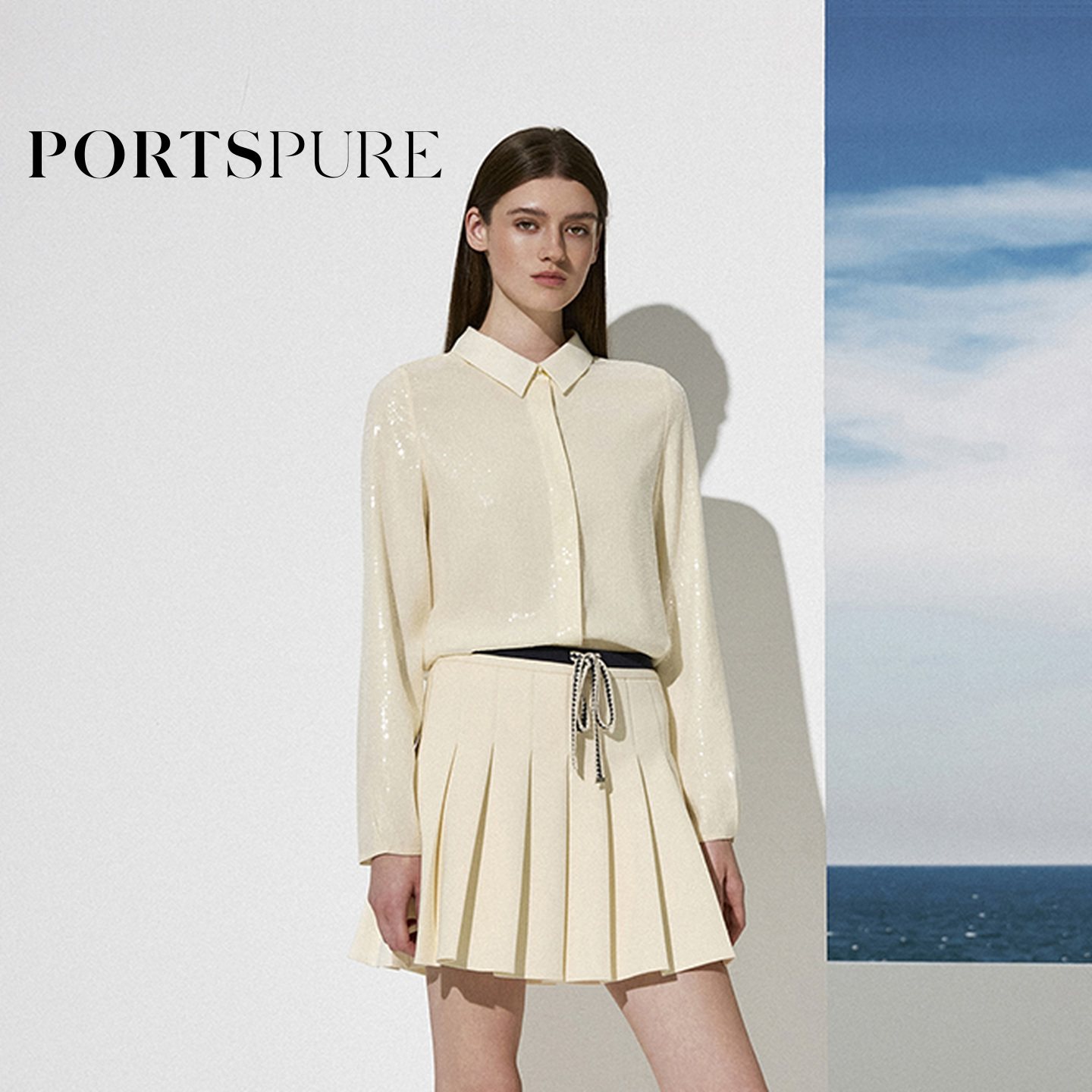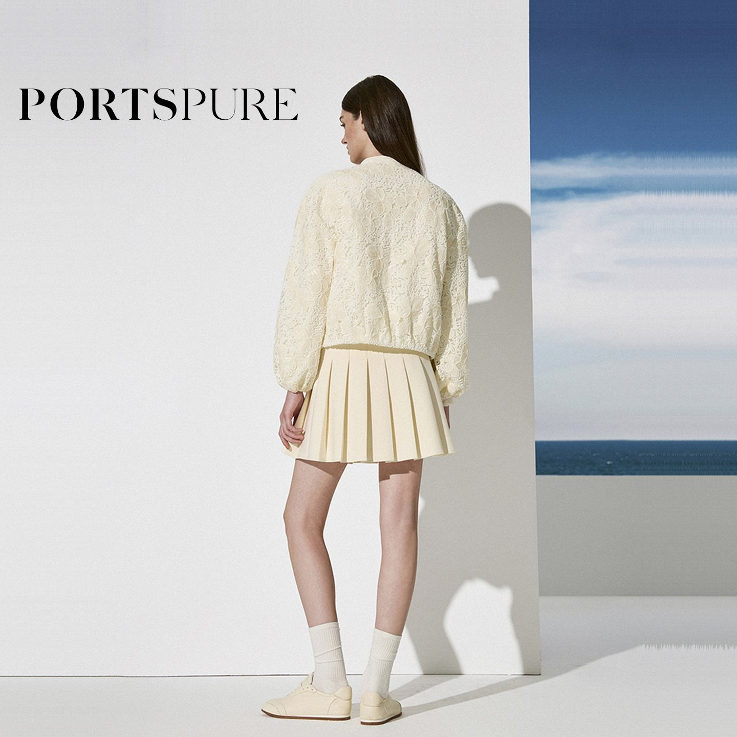 宝姿PORTSPURE女装2026早春新品撞色腰头抽绳百褶A字短裙