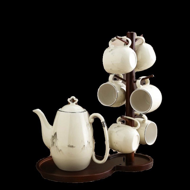 新中式水具套装国潮茶具茶杯家用水杯杯子陶瓷R乔迁杯具带托盘结