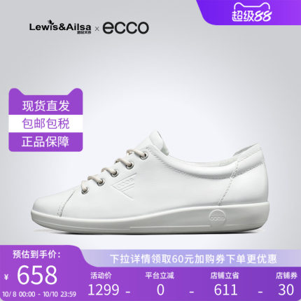 爱步ecco女鞋舒适百搭柔酷小白鞋