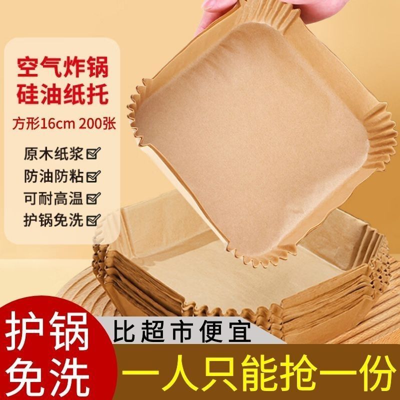 空气炸锅纸碗食物专用吸油纸盘方形硅油纸托烤箱烧烤烘焙纸垫托碗