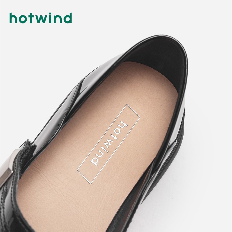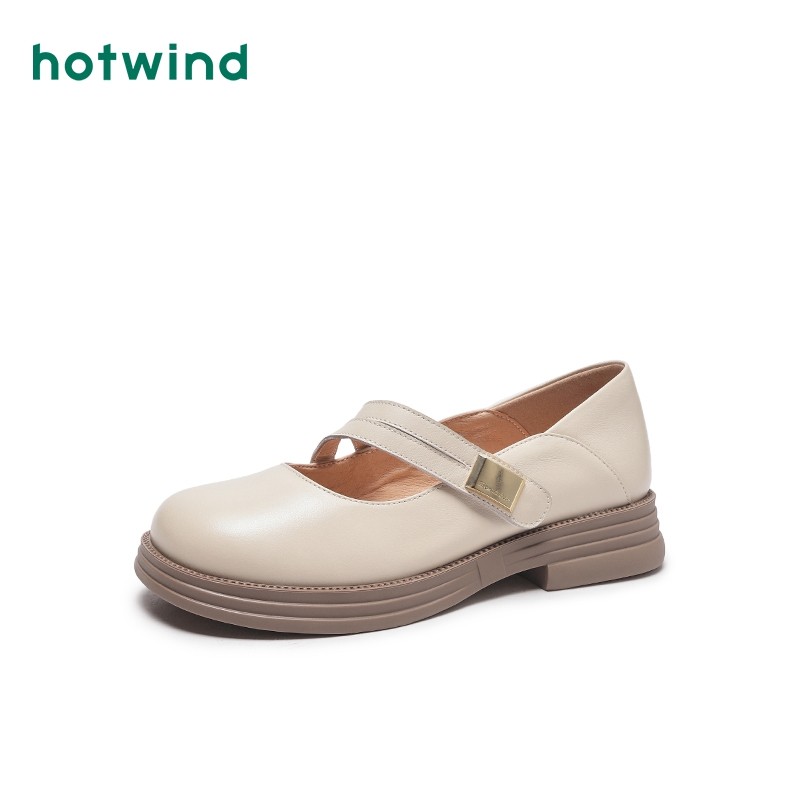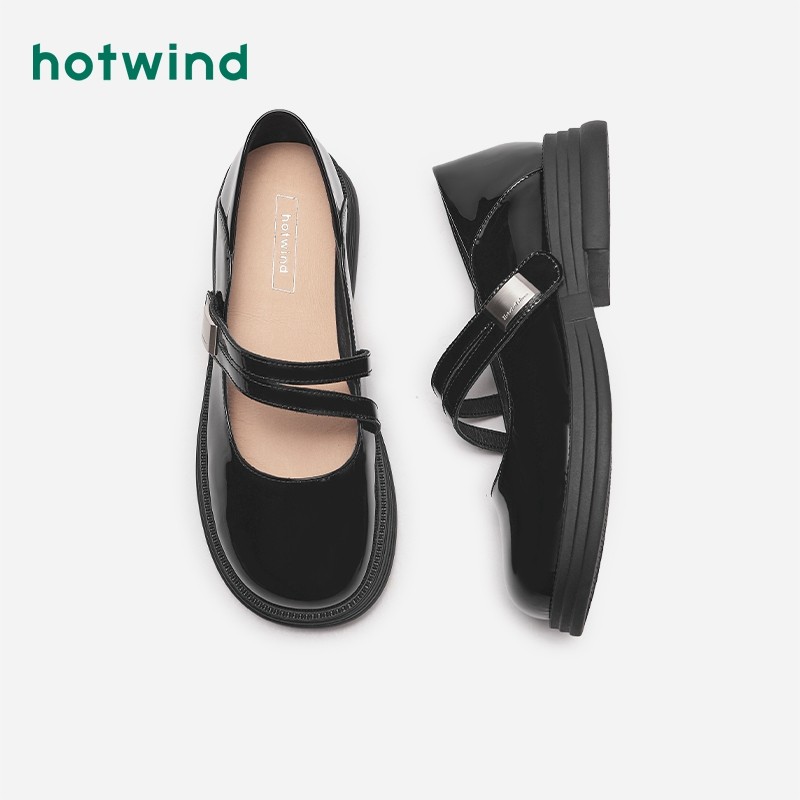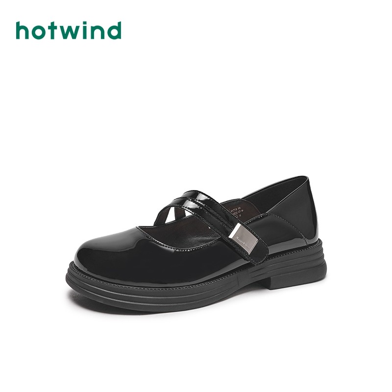 热风秋季新款女士圆头百搭玛丽珍鞋休闲厚底浅口单鞋女鞋