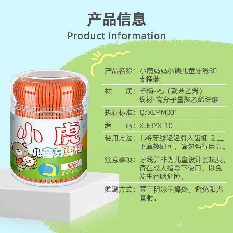 小鹿妈妈护理小虎儿童牙线宝宝青少年超细牙签线家庭装牙线