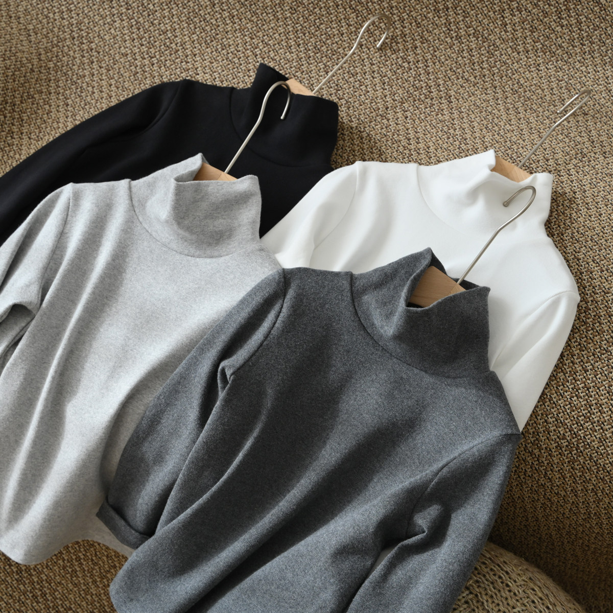 儿童纯棉磨毛高领长袖打底衫秋冬